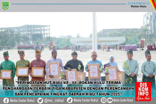 Kabupaten Rokan Hulu berhasil membawa pulang dua penghargaan sekaligus, yaitu Juara III Piagam Penghargaan Pembangunan Daerah Provinsi Riau Tahun 2025 atas prestasi terbaik ketiga dalam perencanaan dan pencapaian daerah tingkat kabupaten. Juara III Desa Batas pada Lomba Desa dan Kelurahan Tingkat Provinsi Riau Tahun 2025.